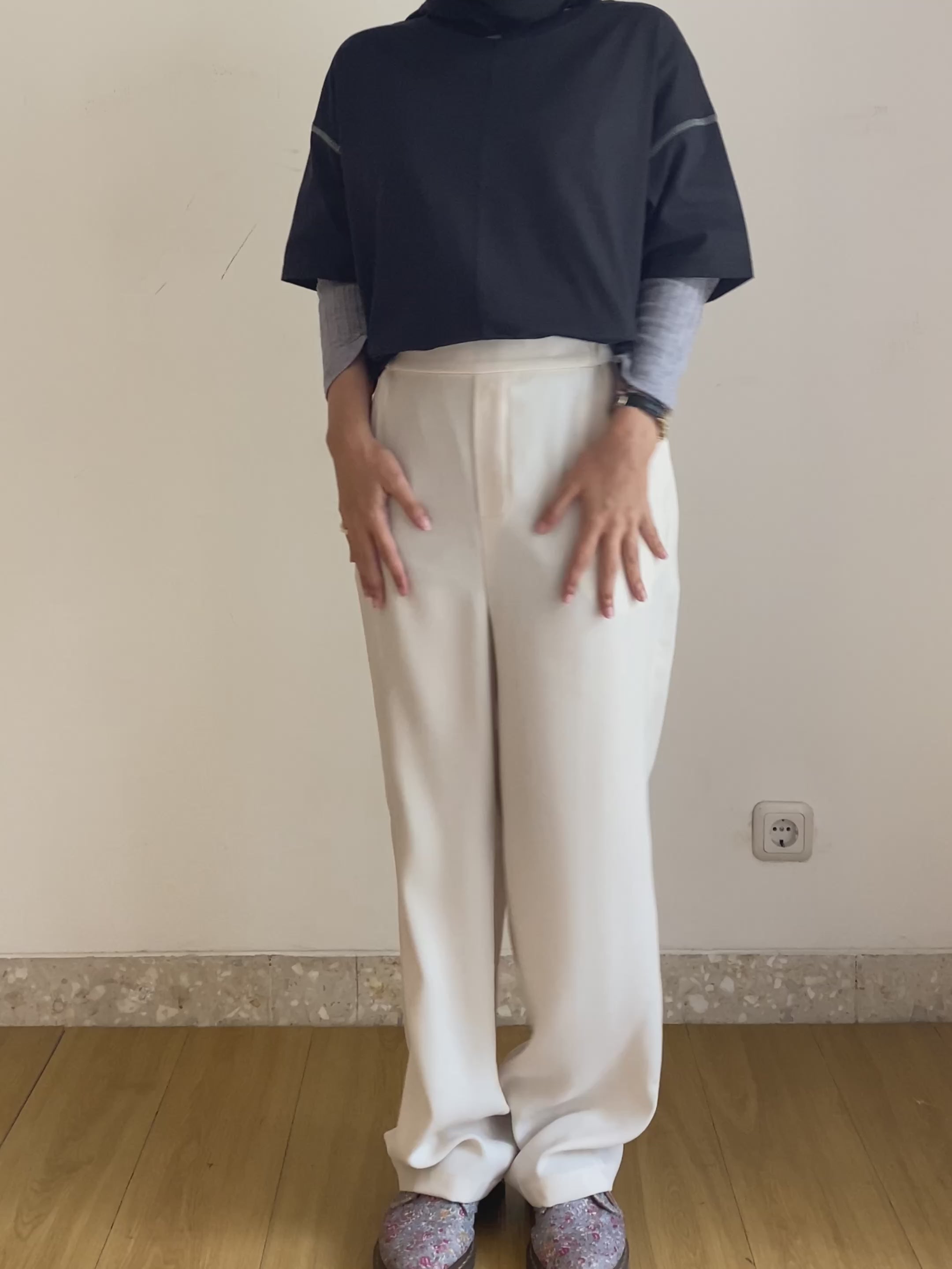 Celana wanita ini bertekstur kain halus, full karet pada bagian belakang pinggang serta terdapat saku pada bagian samping. Cocok untuk dipakai acara formal maupun non formal.