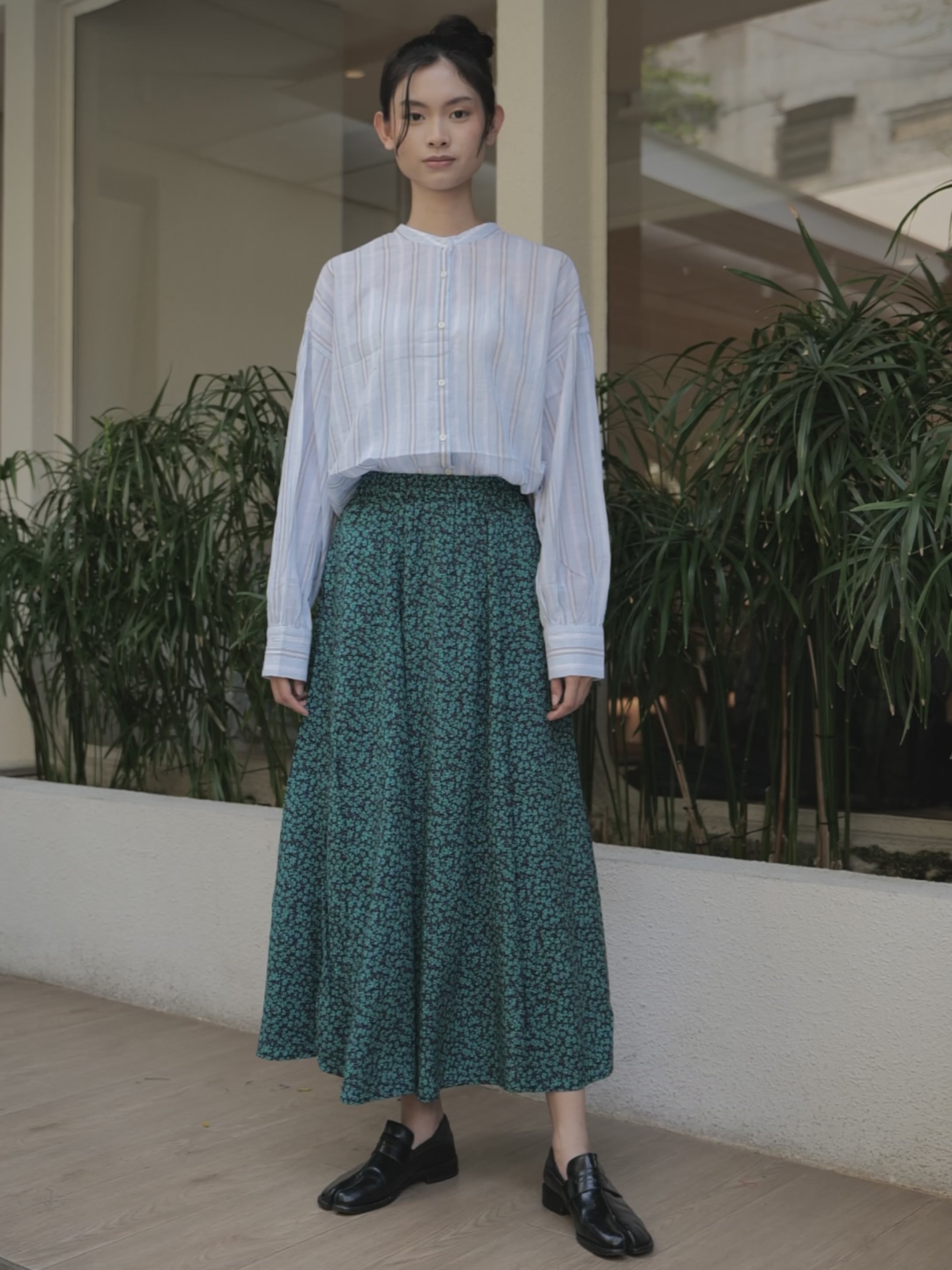 Rok wanita ini di desain dengan volume yang melebar pada bagian bawah sehingga memberikan kesan yang feminin! Rok ini terdapat kain pada lapisan dalam sehingga tidak tembus pandang juga full karet elastis pada bagian pinggang. Terdapat saku pada bagian samping, cocok dipadukan dengan kemeja untuk tampilan formal maupun sweatshirt untuk tampilan kasual.