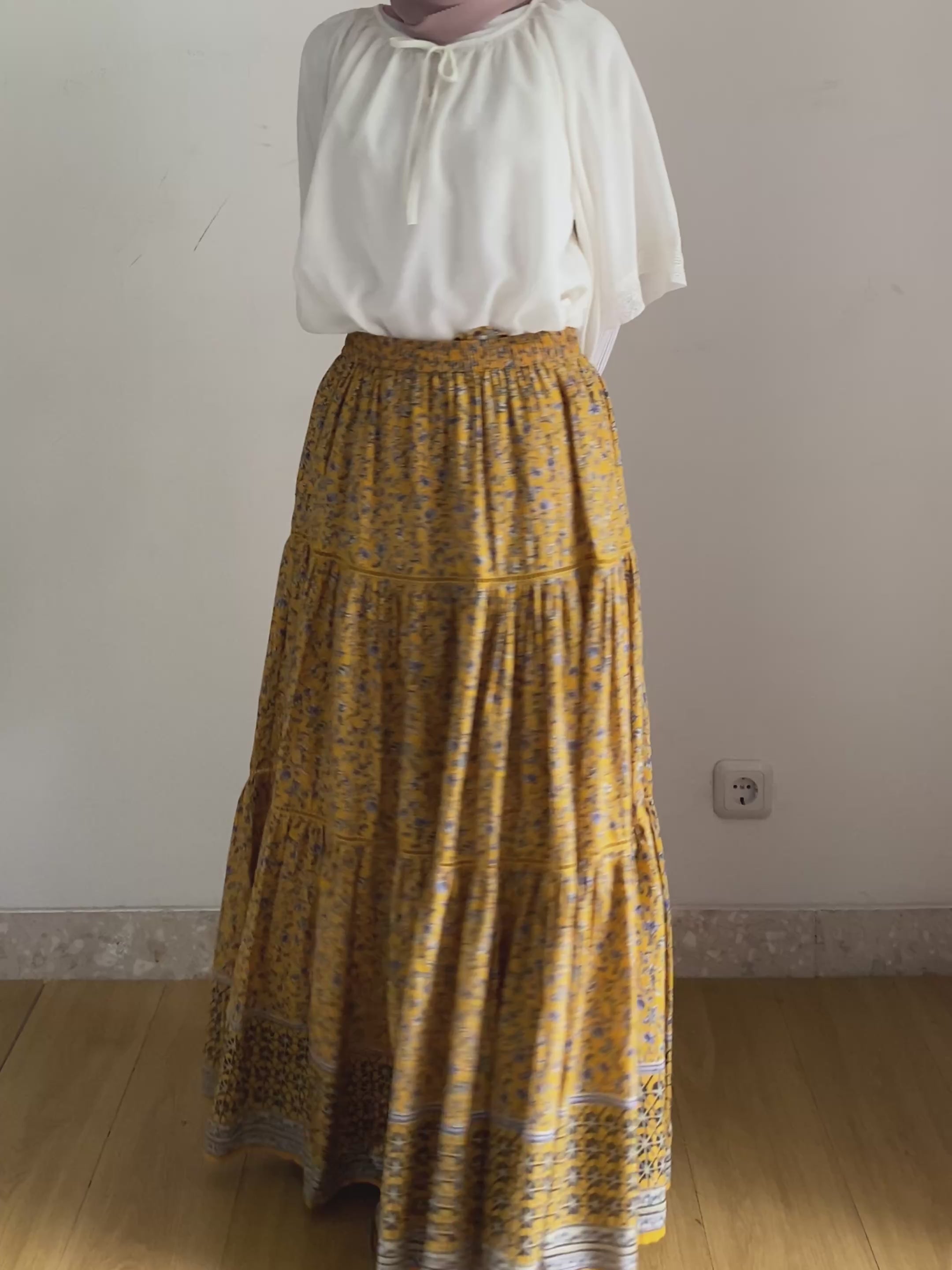 Rok dengan siluet berjenjang dengan porsi volume yang pas ini di desain dengan motif bunga yang terkesan unik dan cantik. Full karet pada bagian pinggang, cocok di padukan dengan blus atau t-shirt yang polos.