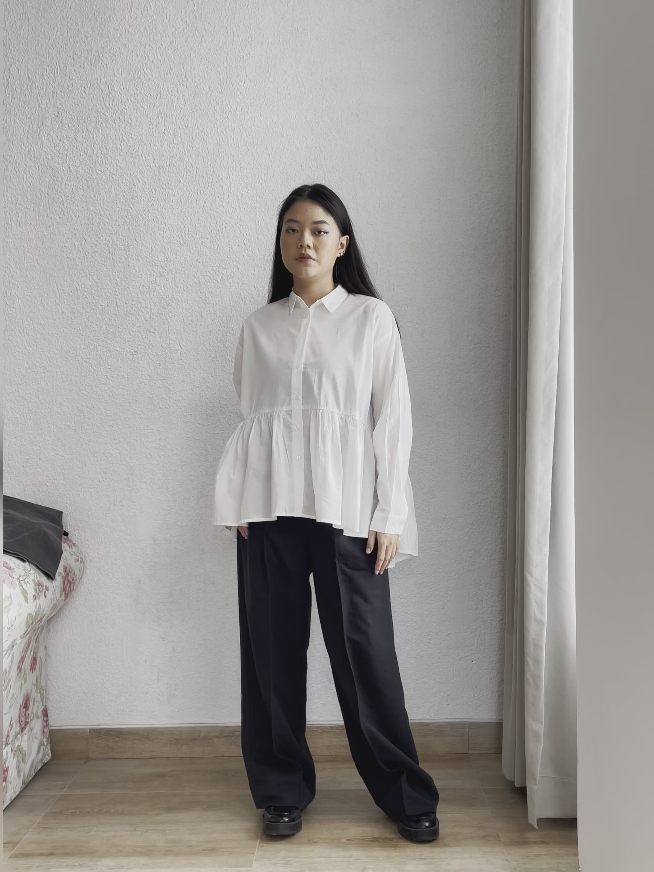 - A set of blouse and pullover that creates a slightly modest atmosphere with an asymmetrical look.