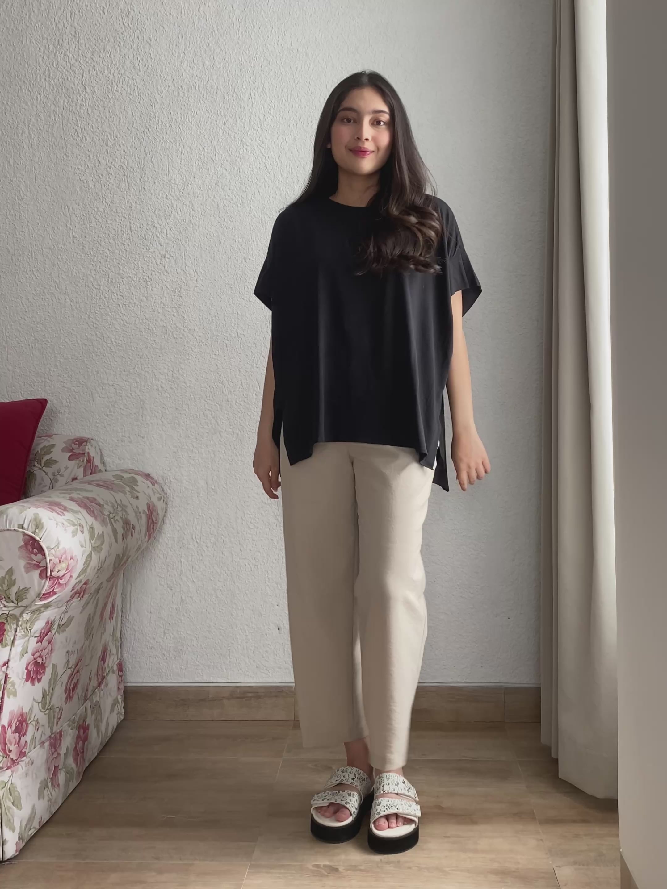 - Box-tuck cut pullover with a loose