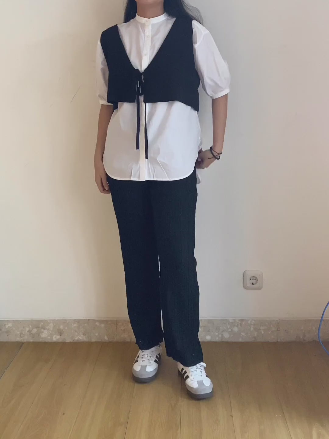 Pakaian Set ini bisa dikenakan secara terpisah antara shirt tunic dan vest, sehingga mudah untuk di mix and match. Shirt tunic full kancing pada bagian depan serta terdapat detail lengan yang bervolume pada bagian lengan. Vest terdapat tali pita pada bagian depan yang dapat di sesuaikan.