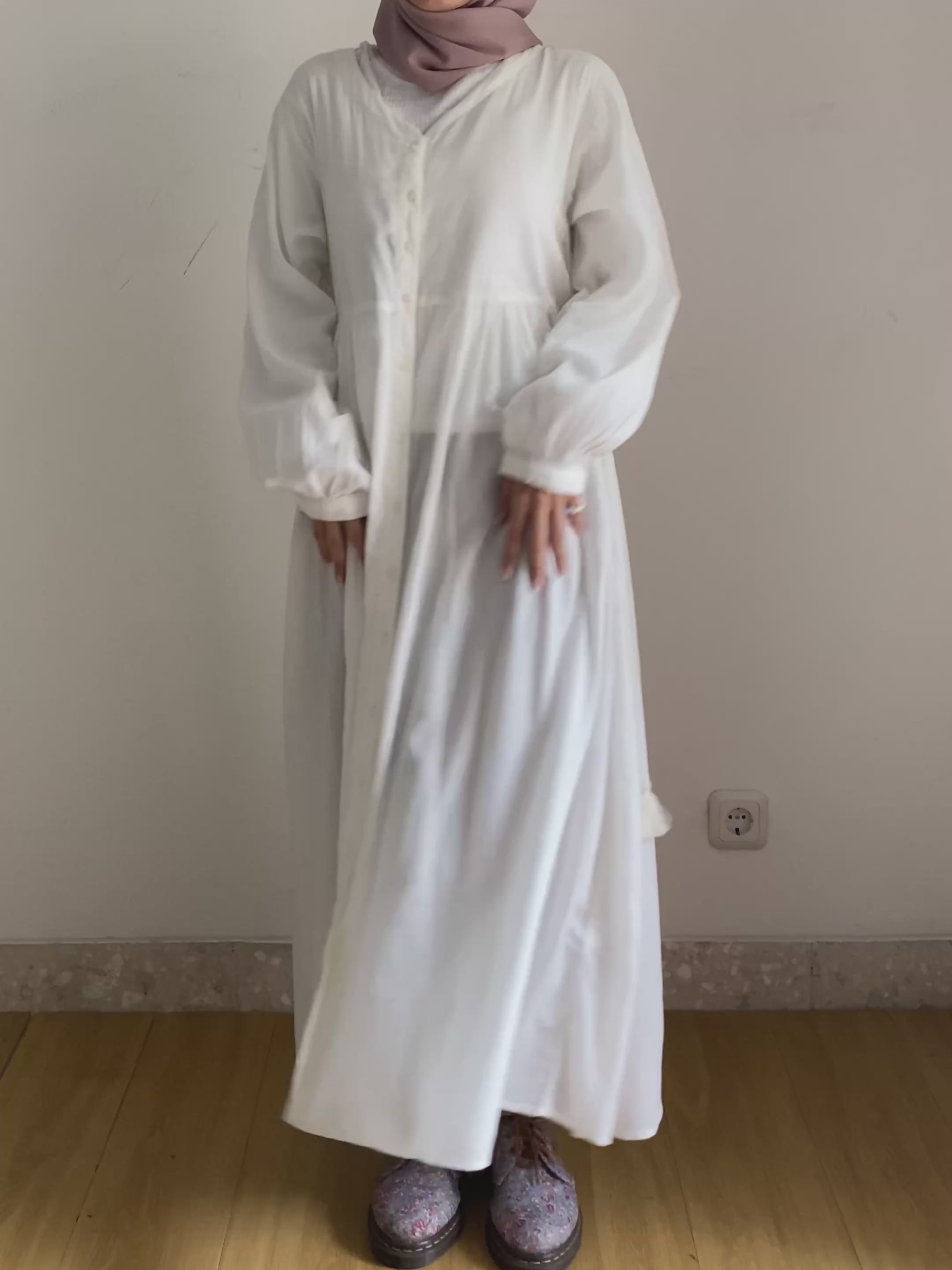 Dress ini di desain dengan model kerah V-neck, terdapat karet dan tali pada bagian pinggang yang dapat disesuaikan. Full kancing pada bagian bawah serta terdapat saku pada bagian samping. Bisa dikenakan sebagai dress saja atau sebagai outer untuk tampilan yang lebih modis!