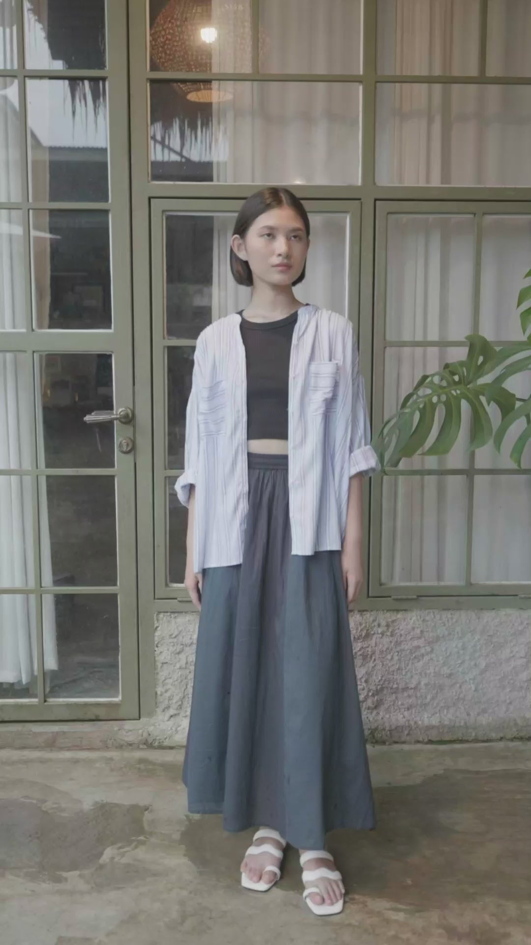 Kemeja wanita ini di desain dengan model kerah sanghai serta full kancing pada bagian depan. Memiliki dua saku di bagian depan. Lipitan-lipitan kecil di bagian belakang memberikan siluet yang elegan. Padukan dengan celana untuk tampilan kasual atau rok untuk tampilan yang lebih feminim.