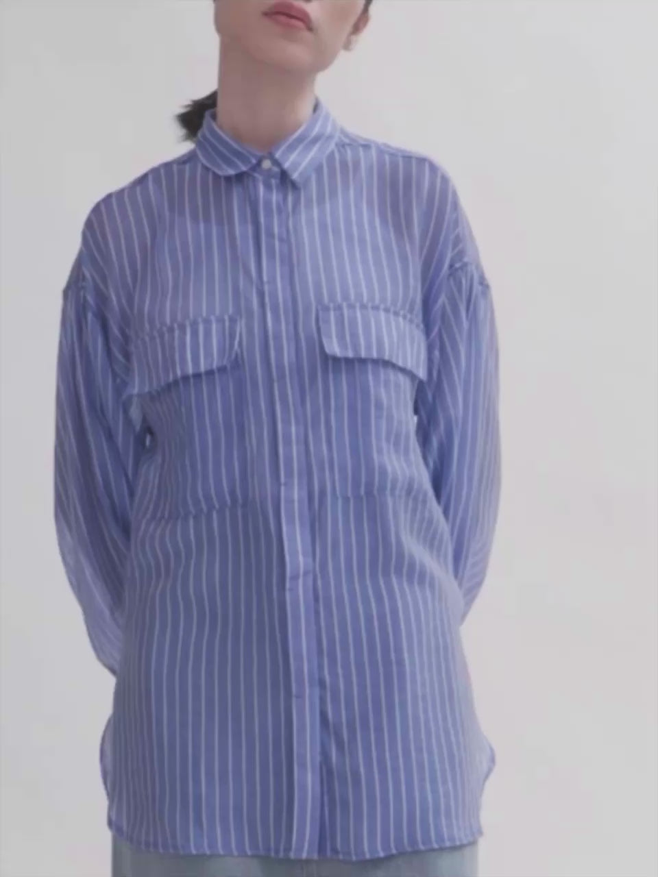 Kemeja ini memiliki desain yang menarik. Mempunyai dua saku besar di bagian depan. Memiliki lengan yang bervolume sehingga memberikan kesan feminim. Bahannya yang ringan dan cocok dipakai sehari-hari.