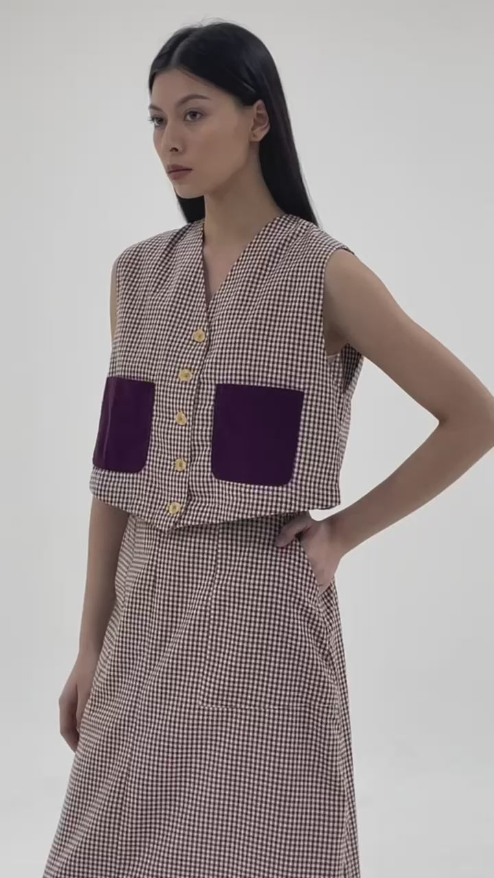 Vest wanita ini didesain dengan V-neck. Memiliki dua bahan yang berbeda sehingga memberikan kesan elegan. Terdapat dua saku di bagian depan. Memiliki full kancing depan. Memiliki bahan yang halus sehingga nyaman saat dipakai. Cocok untuk dikenakan pada acara formal maupun non formal.