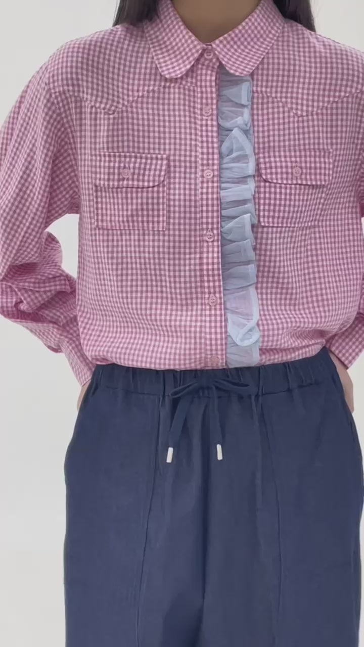 Kemeja wanita lengan panjang ini didesain dengan kerah kemeja. Terdapat dua saku di bagian depan. Detail tile di depan membuat kemeja terlihat elegan. Memiliki bahan yang halus sehingga nyaman saat dipakai. Cocok untuk tampilan kasual atau formal.