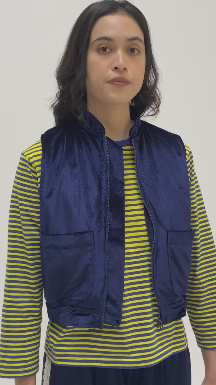 Rompi wanita ini didesain dengan bukaan resleting depan dan karet di bagian bawah. Terdapat detail lace pada bagian sisi rompi sehingga terlihat elegan. Terdapat furing sehingga tidak tembus pandang. Terdapat dua saku yang berfungsi pada bagian depan. Memiliki bahan yang halus sehingga nyaman saat dipakai. Cocok untuk tampilan kasual atau formal.