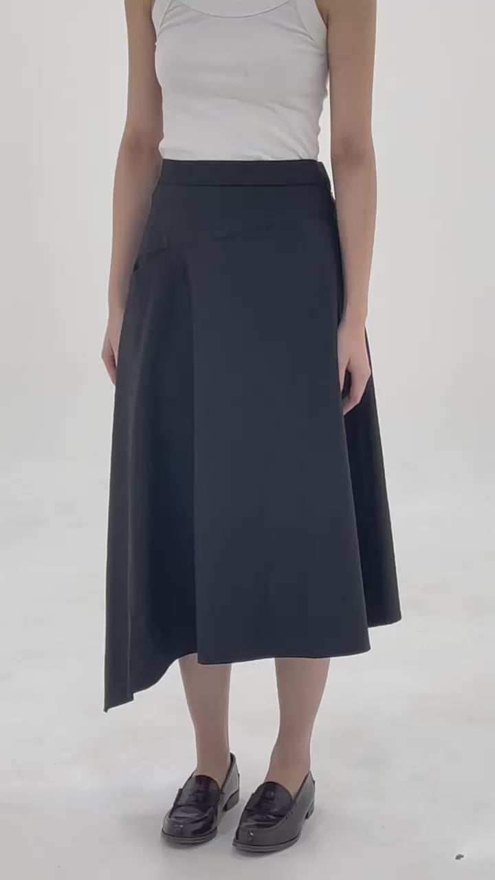 Rok wanita ini didesain dengan Asymmetric. Terdapat saku pada bagian depan dan resleting tersembunyi pada sisi rok. Memiliki bahan yang halus sehingga nyaman saat dipakai. Cocok untuk dikenakan pada acara formal maupun non formal.