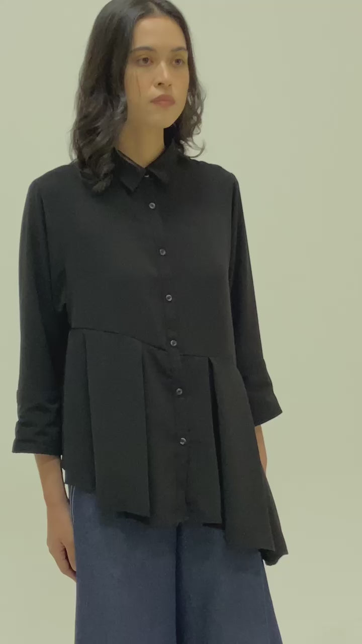 Kemeja wanita ini didesain dengan kerah kemeja. Terdapat full kancing pada bagian depan. Memiliki cuttingan asymmetrical sehingga terlihat elegan. Terdapat detail ruffle di bagian pinggang. Memiliki bahan yang halus sehingga nyaman saat dipakai. Cocok untuk tampilan kasual atau formal.