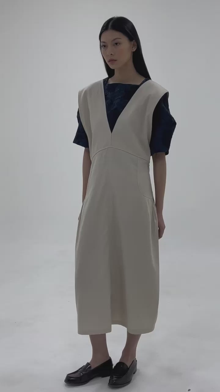 Overall dress wanita ini didesain dengan siluet v-neck. Terdapat resleting di sisi kiri rok. Memiliki karet di bagian pinggang. Memiliki detail kantong depan yang menarik. Memiliki bahan yang halus sehingga nyaman saat dipakai. Cocok untuk dikenakan pada acara formal maupun non formal.