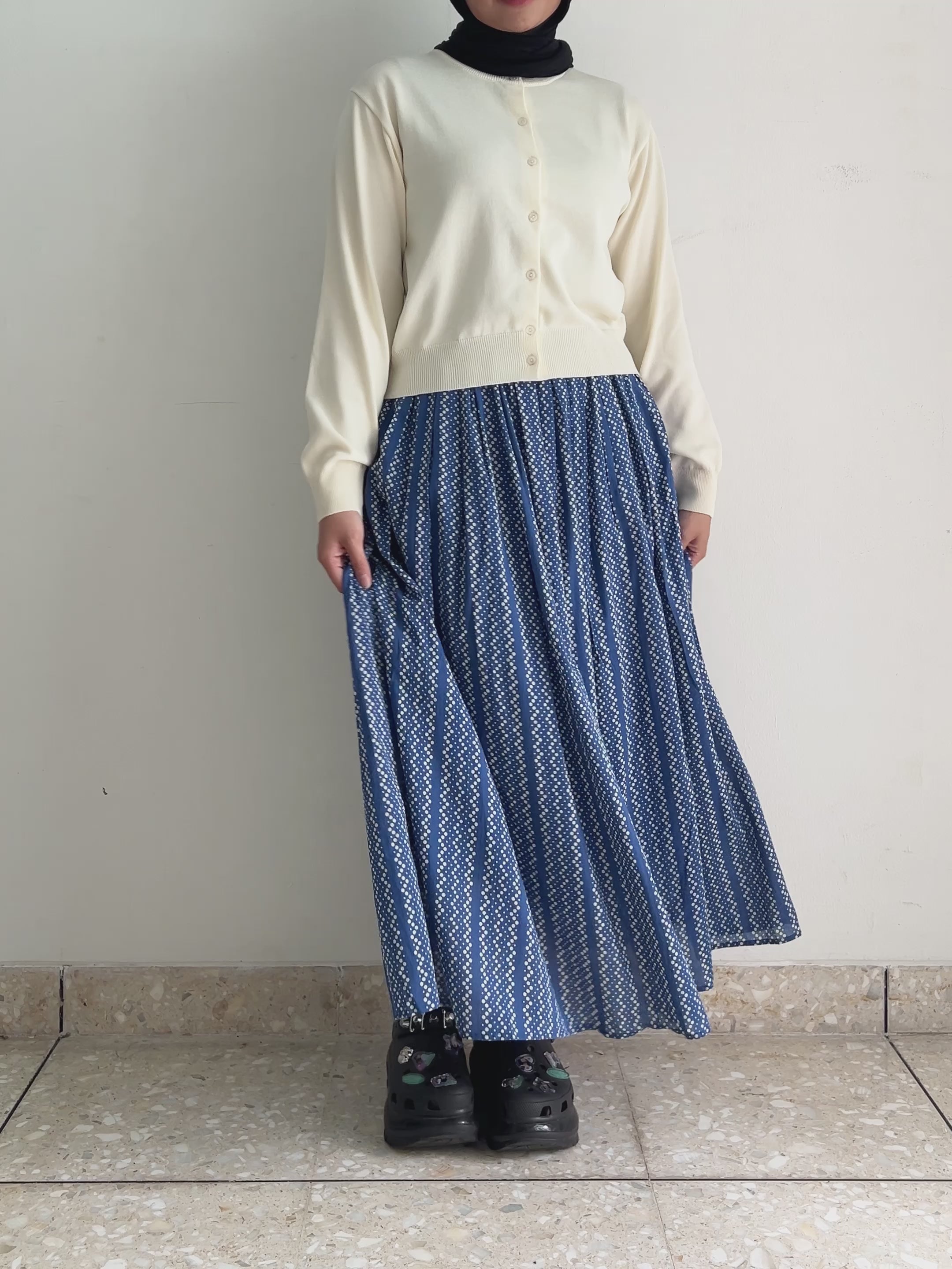 Rok wanita ini di desain bervolume sehingga memberikan kesan yang feminin saat dikenakan. Terdapat kain pada lapisan dalam sehingga tidak tembus pandang juga full karet elastis pada bagian pinggang. Saku pada bagian samping dapat berfungsi, cocok dipadukan dengan kemeja untuk tampilan formal maupun sweatshirt untuk tampilan kasual.