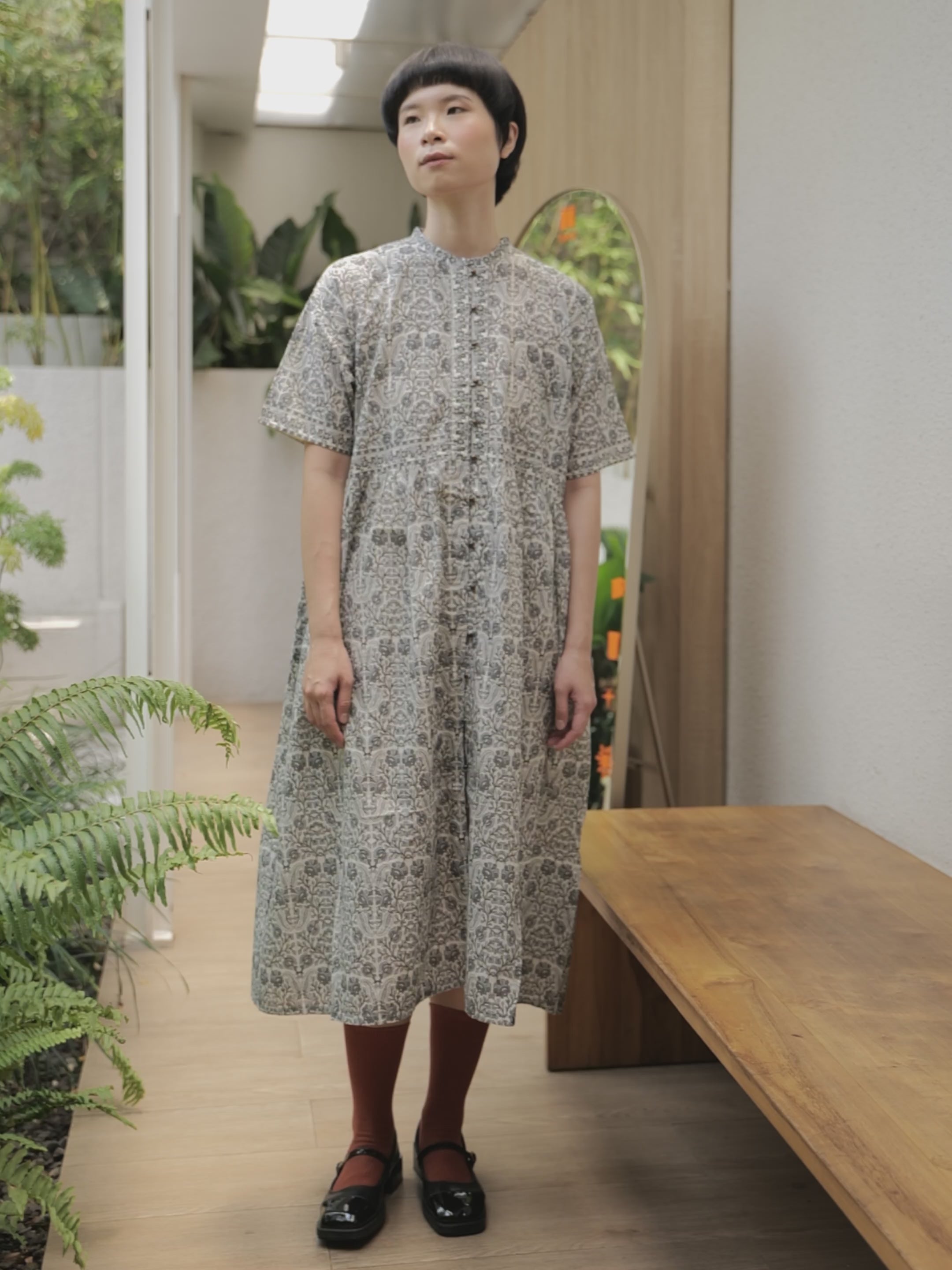 Dress lengan pendek ini di desain dengan pattern arabesque yang unik dan eye catching! full kancing pada bagian depan serta terdapat saku pada bagian samping. Dress ini bisa dikenakan sebagai Dress saja atau sebagai Outer.