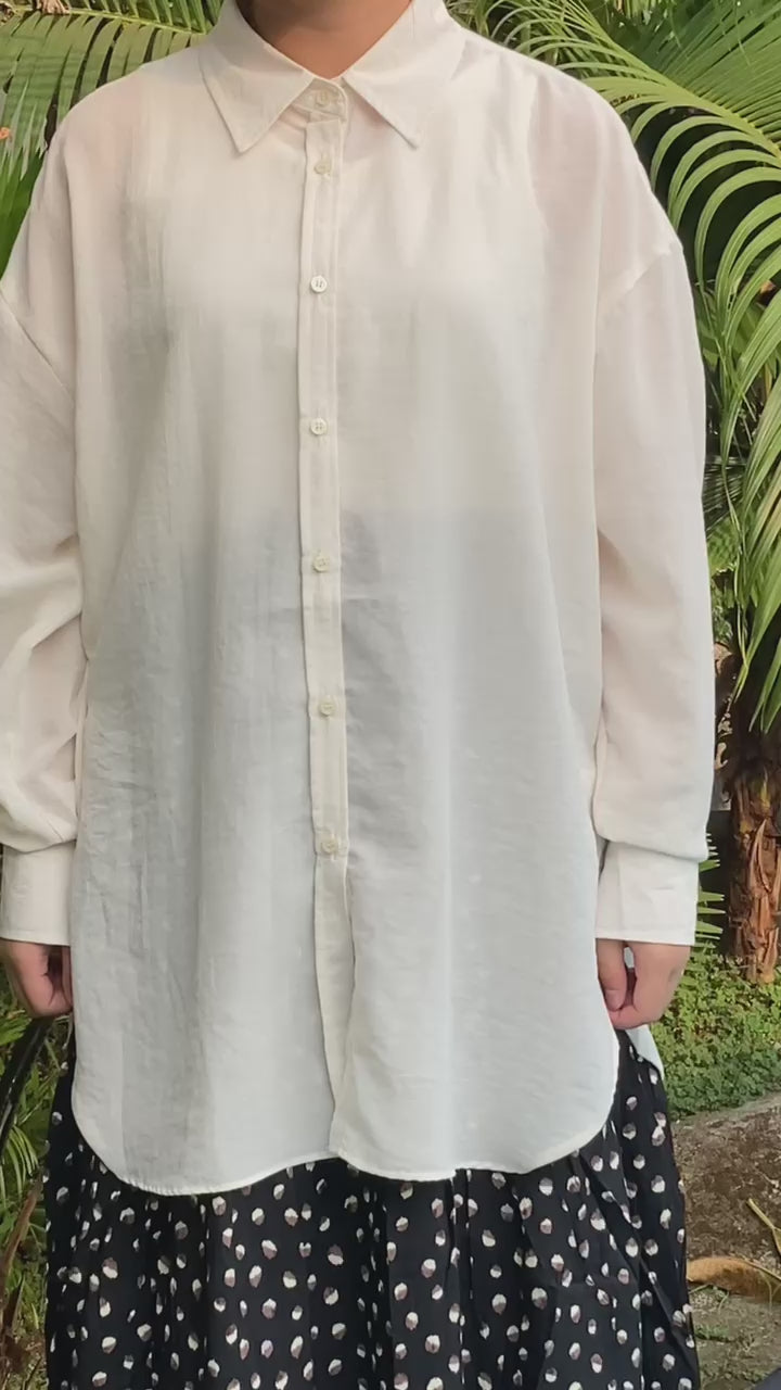 Atasan wanita oversize ini di desain dengan kerah kemeja yang bisa memberikan kesan elegan dan feminim pada penampilan. Terdapat slit pada bagian samping dan cuttingan bawah melengkung. Cocok digunakan pada acara formal maupun casual, bisa dipadukan dengan celana panjang atau rok sehingga terlihat lebih elegan.
