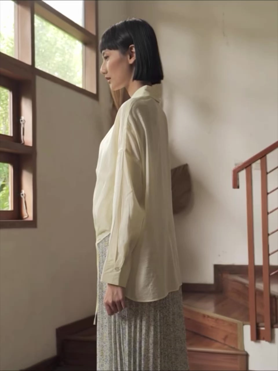 Kemeja wanita oversize ini di desain dengan aksen tali yang dapat diserut pada bagian bawah sehingga dapat disesuaikan bentuk nya saat dikenakan, full kancing pada bagian depan serta di desain dengan model panjang yang berbeda antara bagian depan dan belakang. Bisa dikenakan sebagai kemeja saja maupun sebegai outer.