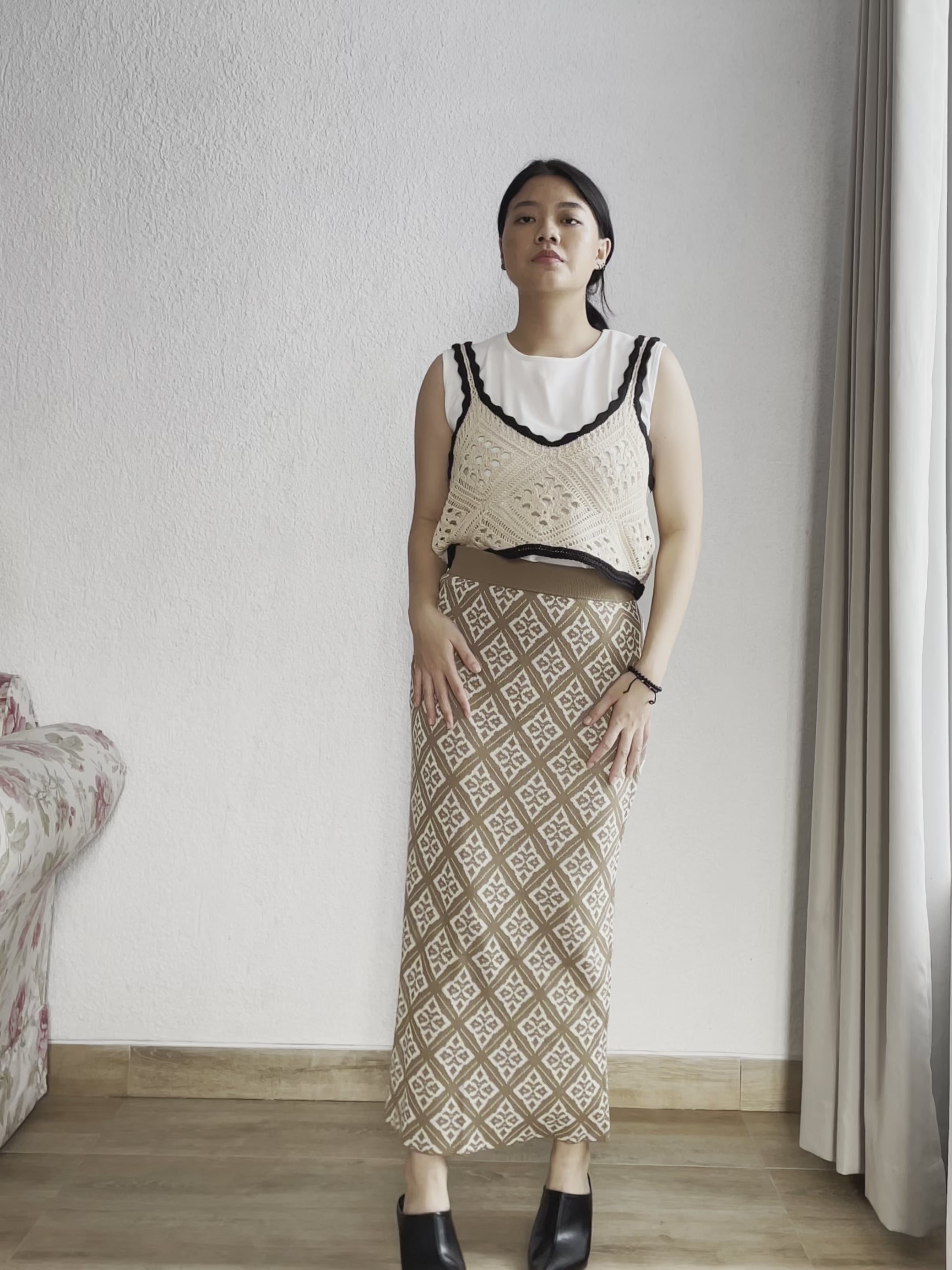 Rok ini di desain dengan motif jacquard yang eye catching! dengan pola cutting I-line berbahan halus serta tampilan yang terlihat elegan.