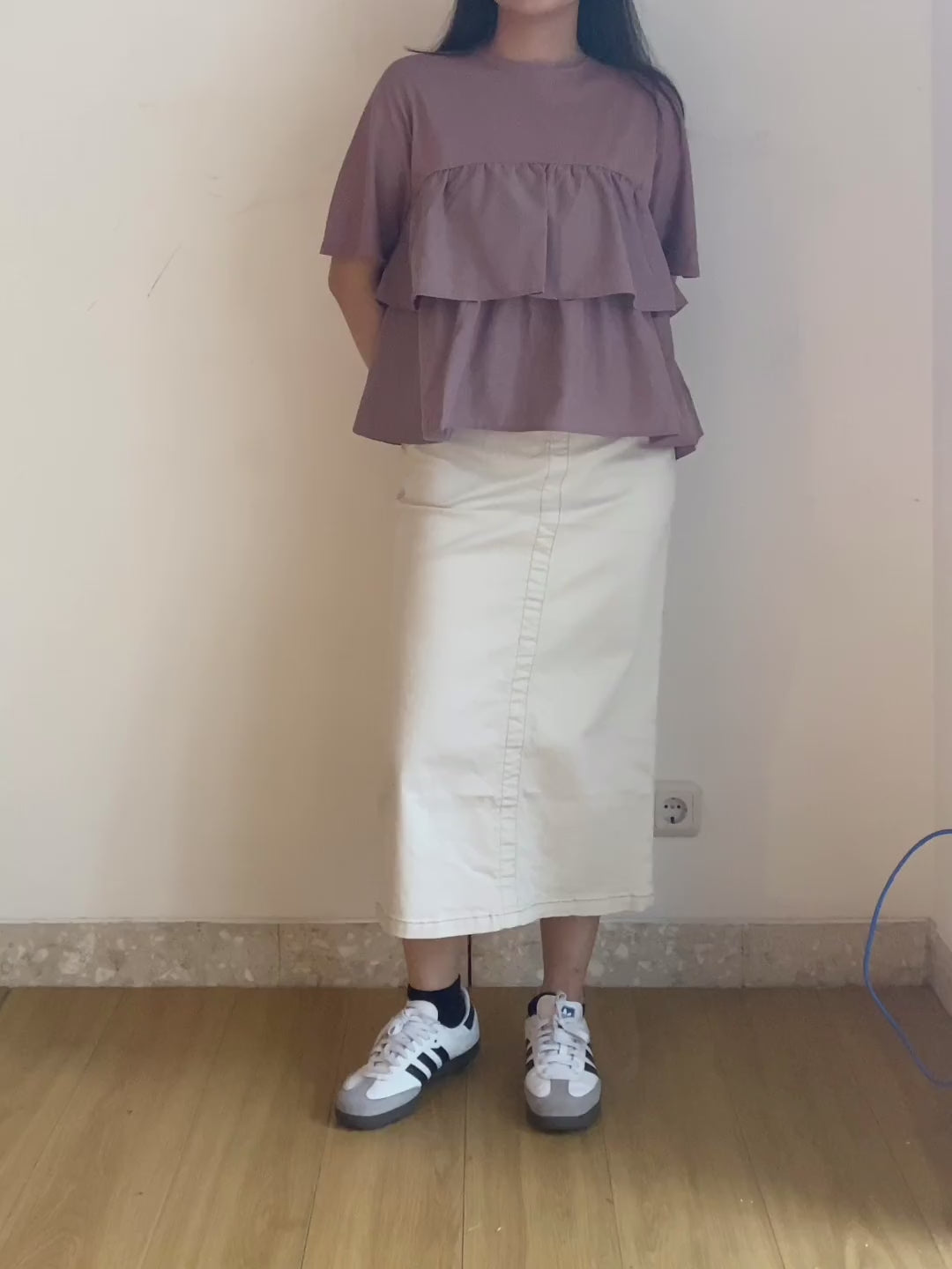 Atasan wanita lengan pendek dengan aksen ruffle pada bagian atas dan bawah, terdapat 1 kancing pada bagian belakang. Bisa dikenakan untuk acara formal maupun non formal, padukan dengan celana jeans untuk tampilan kasual atau rok untuk tampilan yang lebih feminin.