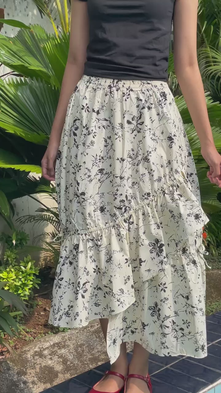 Rok wanita ini didesain dengan asymmetrical dan pita di bagian depan. Ruffle depan memberikan kesan elegan. Memiliki detail pinggang full karet. Terdapat kain pada lapisan dalam sehingga tidak tembus pandang. Memiliki panjang depan dan belakang yang berbeda. Bahannya yang ringan dan halus sehingga nyaman saat dipakai. Cocok dikenakan untuk acara kasual.