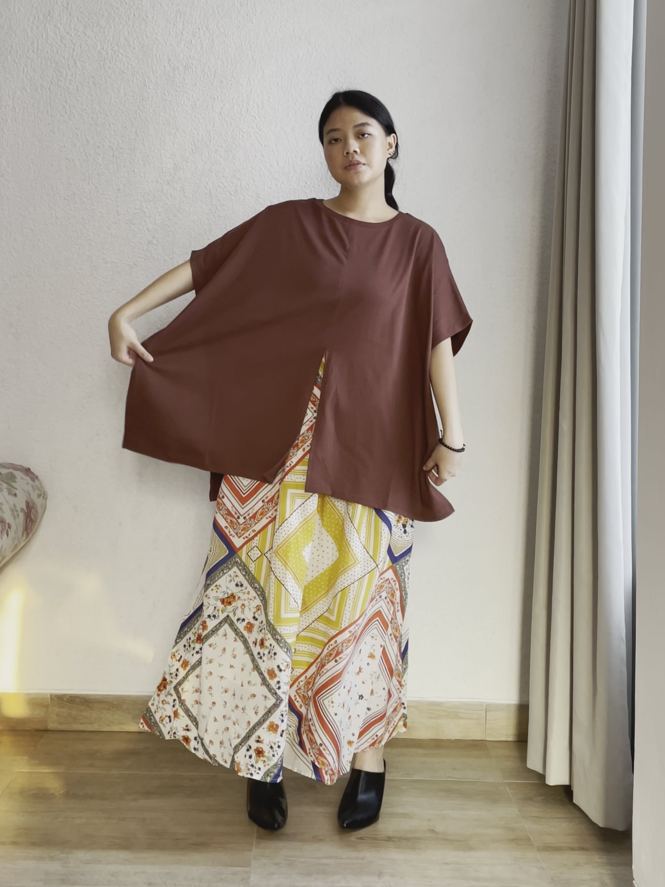 Atasan wanita ini cukup unik karna bisa dikenakan dengan 4 gaya, di desain dengan cutting yang loose sehingga sangat nyaman untuk dikenakan sehari-hari.
