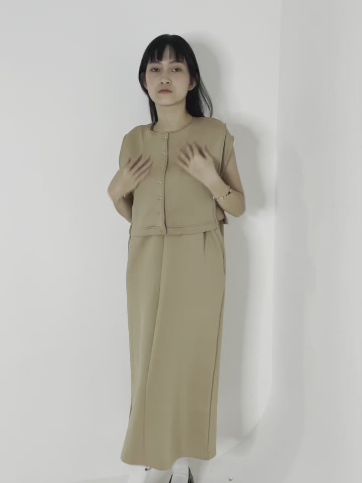 - A set item of a cut vest and a V-neck dress