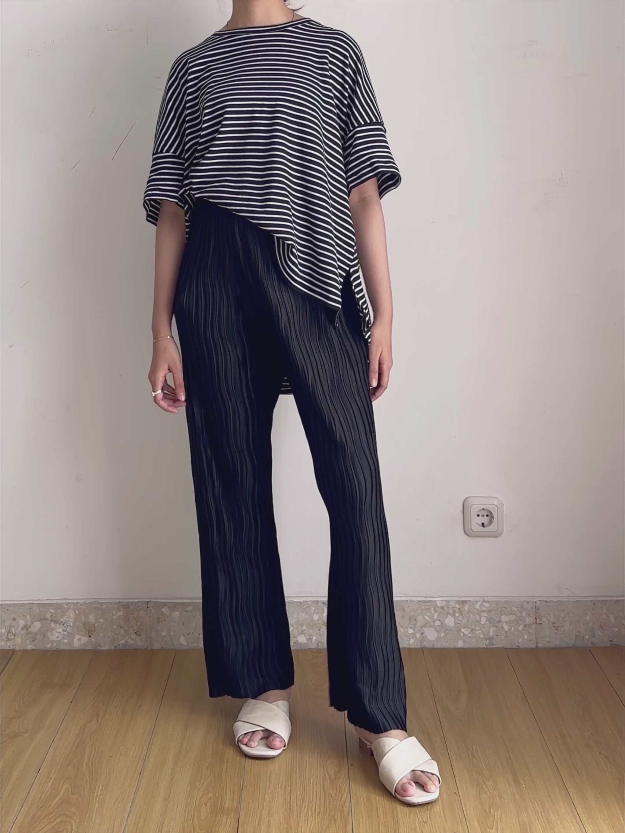 Celana kulot wanita ini di desain dengan model wave pleats dan full karet pada pinggang.