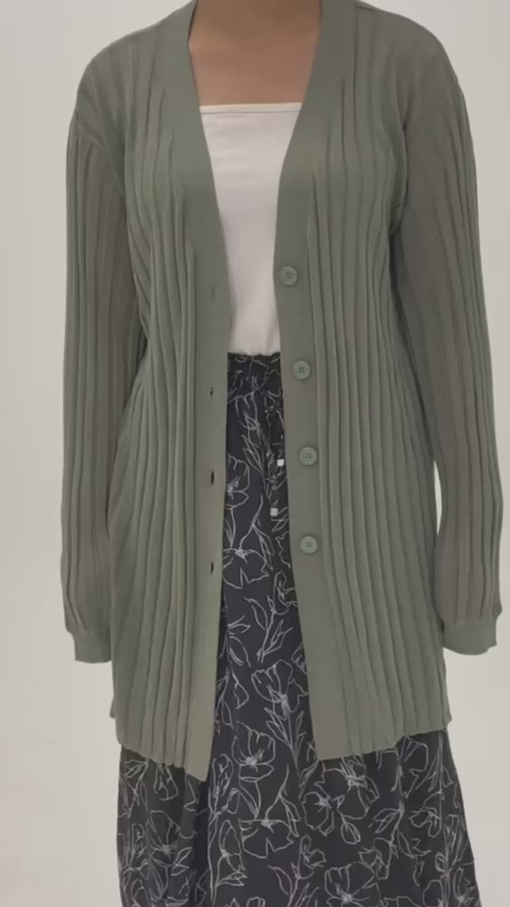 Cardigan wanita ini didesain dengan i-line. Terdapat full kancing pada bagian depan. Memiliki detail lipitan rajut sehingga memberikan kesan yang elegan. Bahan yang halus sehingga nyaman saat dipakai. Cocok untuk dipadukan dengan tanktop atau atasan lainnya.
