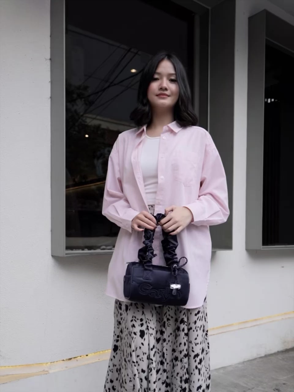 Kemeja wanita lengan panjang ini didesain dengan kerah kemeja dan siluet melengkung di bagian bawah. Terdapat saku depan dan bukaan full kancing depan. Dapat dikenakan sebagai outer maupun kemeja sehari-hari.