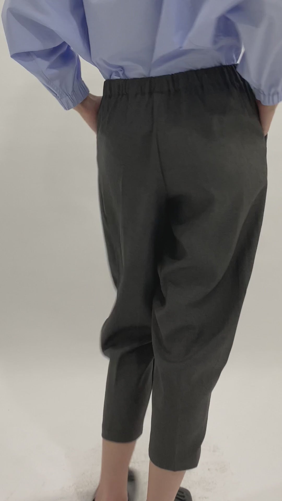 Celana wanita ini didesain dengan model harem. Memiliki detail karet di bagian pinggang. Terdapat saku di bagian kanan dan kiri. Bahan yang ringan sehingga nyaman saat dipakai. Cocok dikenakan untuk acara formal maupun kasual.