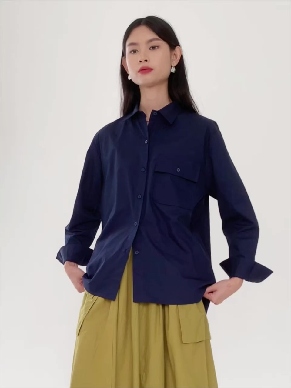 Kemeja wanita lengan panjang ini di desain dengan full kancing dan terdapat saku pada bagian depan, juga terdapat slit disisi samping. Dengan panjang yang berbeda antara bagian depan dan belakang sehingga terkesan feminim. Cocok untuk dikenakan sebagai outer maupun sebagai kemeja biasa.