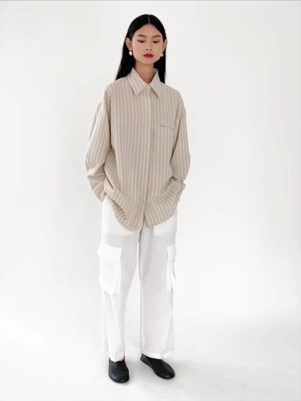 Kemeja wanita ini didesain dengan siluet oversized yang dilengkapi fitur unik, yaitu hidden pocket & buttons di bagian depan. Cocok untuk dikenakan sehari-hari.