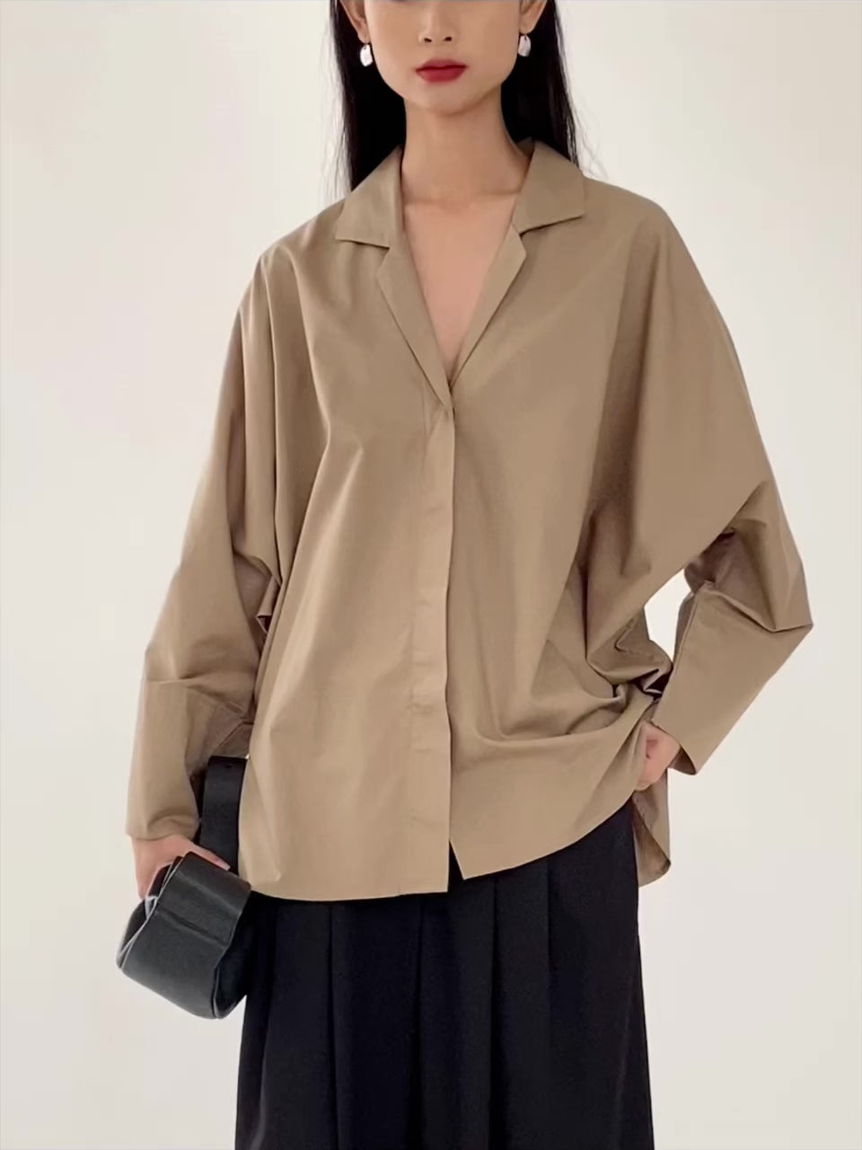 Kemeja wanita lengan panjang ini didesain dengan siluet oversized dan detail lengan yang loose dan cuff yang bisa dilipat. Memiliki fitur open collar dan hidden button. Cocok dikenakan untuk acara formal maupun non formal.