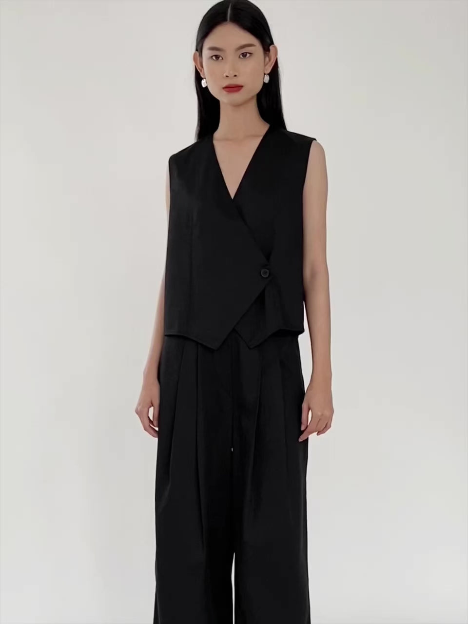 Modern vest ini didesain dengan style double-breasted dengan satu kancing di depan dan satu kancing di dalam. Cocok digunakan untuk acara formal atau kasual.