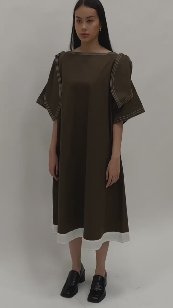 Dress wanita ini didesain dengan melebar di bagian bawah. Terdapat saku di sisi rok. Memiliki pita di bagian bahu sehingga memberikan kesan yang elegan. Bahannya halus dan ringan sehingga nyaman saat dipakai. Cocok dipakai untuk acara formal dan kasual.