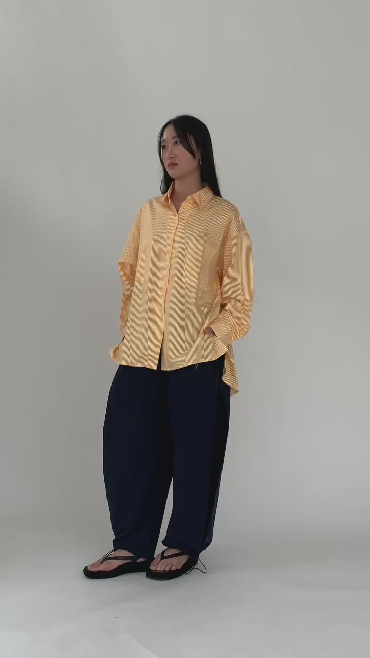Kemeja lengan panjang wanita ini didesain dengan kerah kemeja. Memiliki siluet panjang berbeda pada bagian depan dan belakang. Memiliki detail full kancing bagian depan dan dua saku depan. Terdapat slit di sisi baju yang memberikan kesan elegan. Terdapat detail flap dan lipitan di bagian belakang baju. Cocok untuk dipakai acara formal maupun non formal.