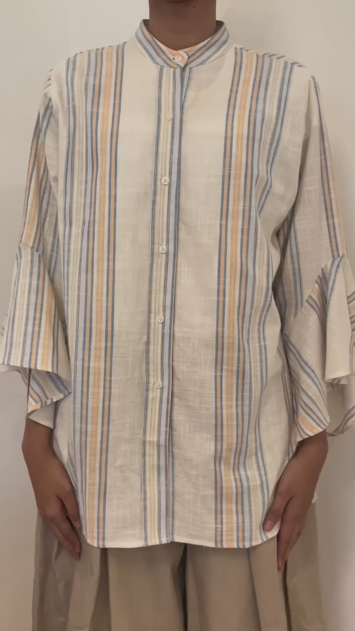 Atasan wanita ini didesain dengan full kancing depan. Memiliki detail lengan lonceng sehingga terlihat elegan saat dipakai. Bahannya yang ringan dan halus sehingga nyaman saat dipakai. Cocok dikenakan untuk acara kasual.