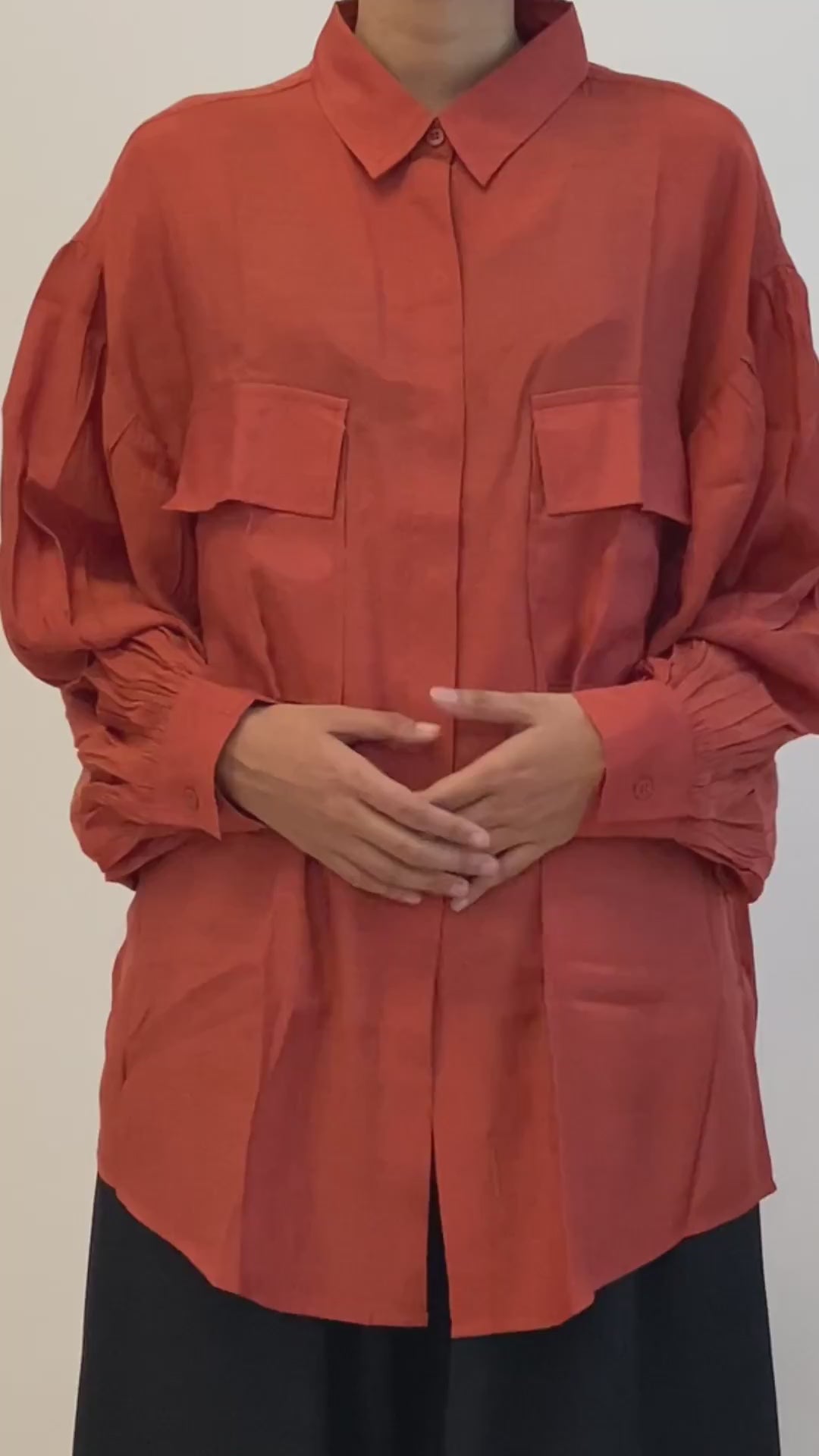 Kemeja wanita ini memiliki desain yang menarik. Mempunyai dua saku besar di bagian depan. Memiliki lengan yang bervolume sehingga memberikan kesan feminim. Bahannya yang ringan dan cocok dipakai sehari-hari.